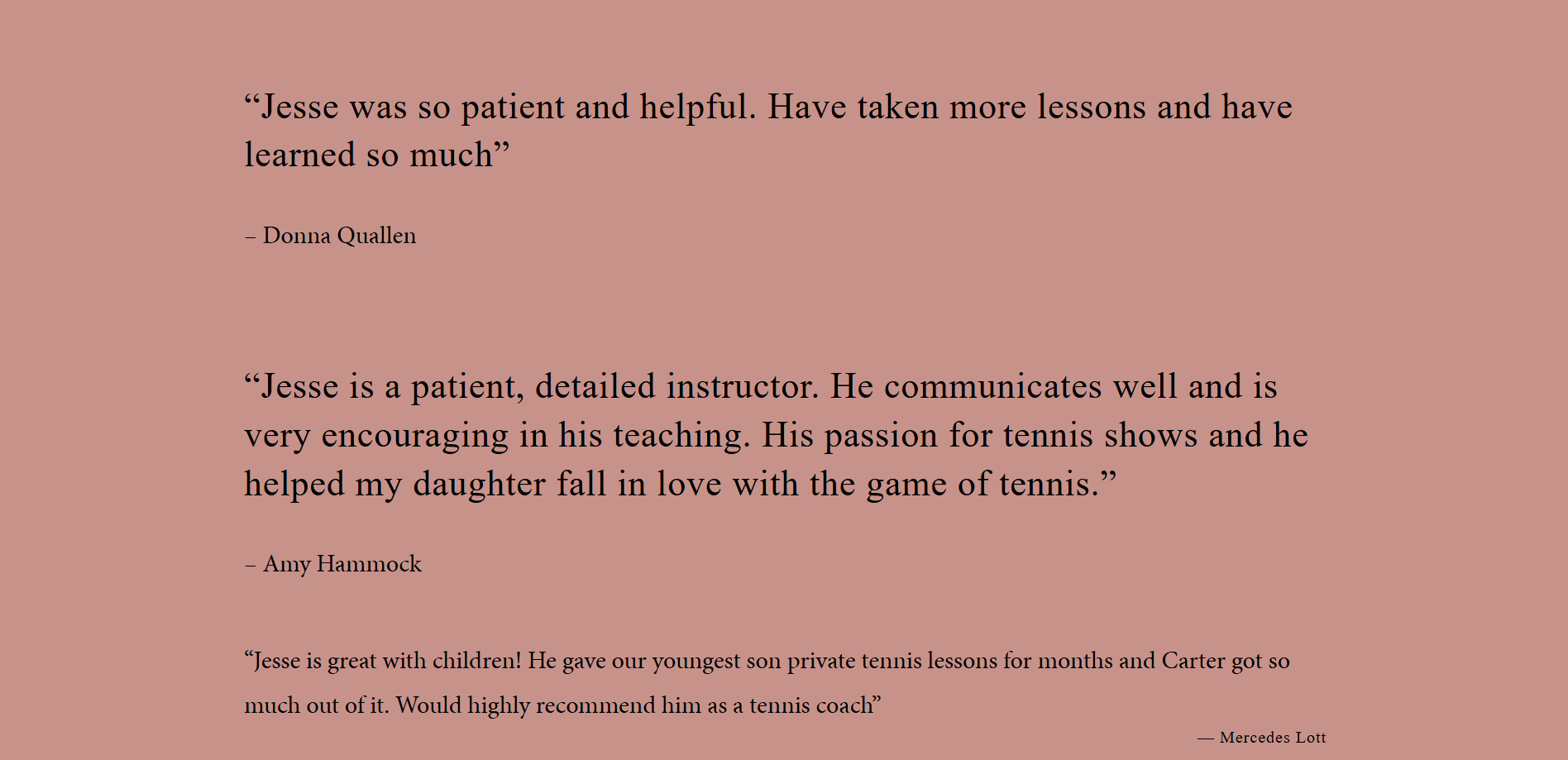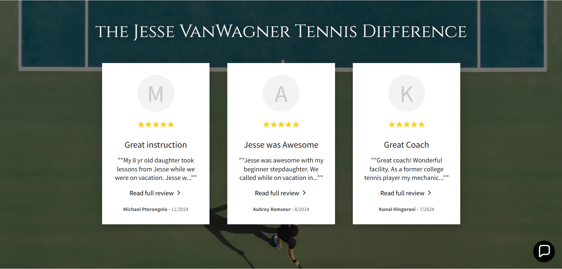 Through Opus AI services, Jesse Van Wagner Tennis now has an engaging, professional website that effectively communicates his expertise while providing visitors with a seamless user experience. This enhanced digital presence will help attract new clients, build trust, and drive conversions.
